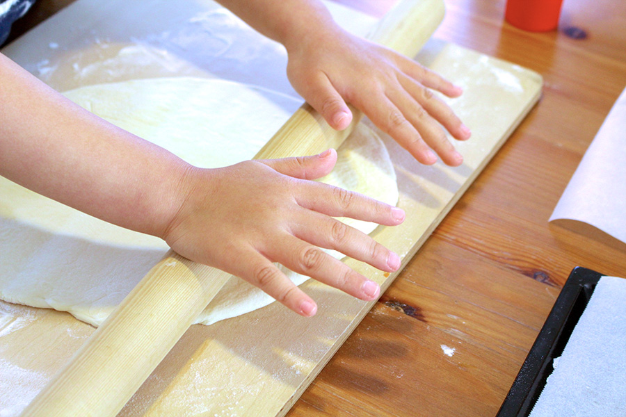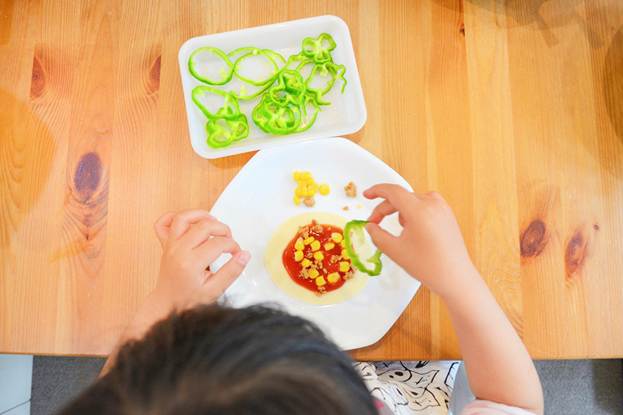 食育プラスでは特に、日常生活とも密接な、食材の下準備をする、混ぜる、焼く、お皿によそるといった料理や、作ったものを実際に食べるという食育を通し、苦手を克服させるだけでなく、得意を延ばす療育を実施しています。